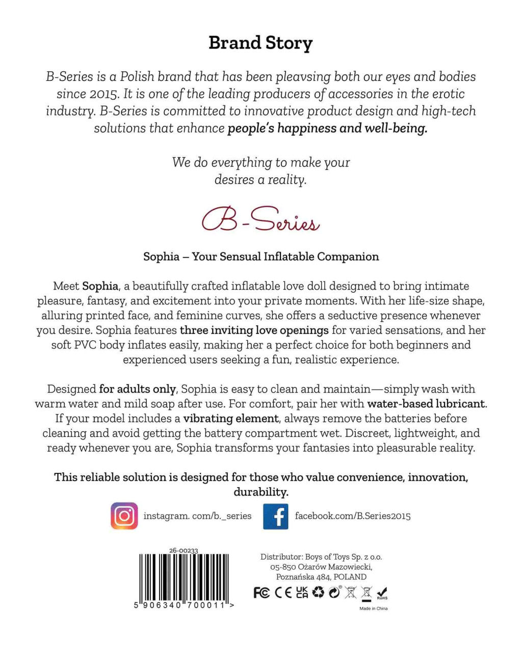 - Élethű kialakítás: Sophia teljes méretű formája és vonzó arcmintázata igazi nőies vonzerőt kölcsönöz, amely magával ragad.